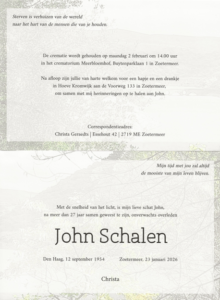 Ons bereikte het droevige bericht dat ons lid John Schalen afgelopen vrijdagmiddag op 71-jarige leeftijd is overleden. John speelde op maandagavond met zijn vrouw Christa bij ons op de club.