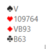 Je hebt zes vaste slagen in schoppen, en 5 verliezers vanwege twee keer de H-klein combinatie. Rechts past. Ik zet de tegenstanders onder druk en bied 4 schoppen. Links past en partner past. Rechts verrast me met een doublet. Links denkt even na en biedt 5 harten, dat resoluut wordt gedoubleerd door partner. Het hele biedverloop en het spel.